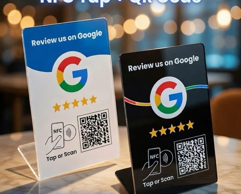 Hemos creado un sistema de reseñas con QR que permite a tus clientes dejar una valoración en tu página oficial de Google de forma rápida y sencilla. Solo tienen que escanear el QR o acercar el móvil al soporte.